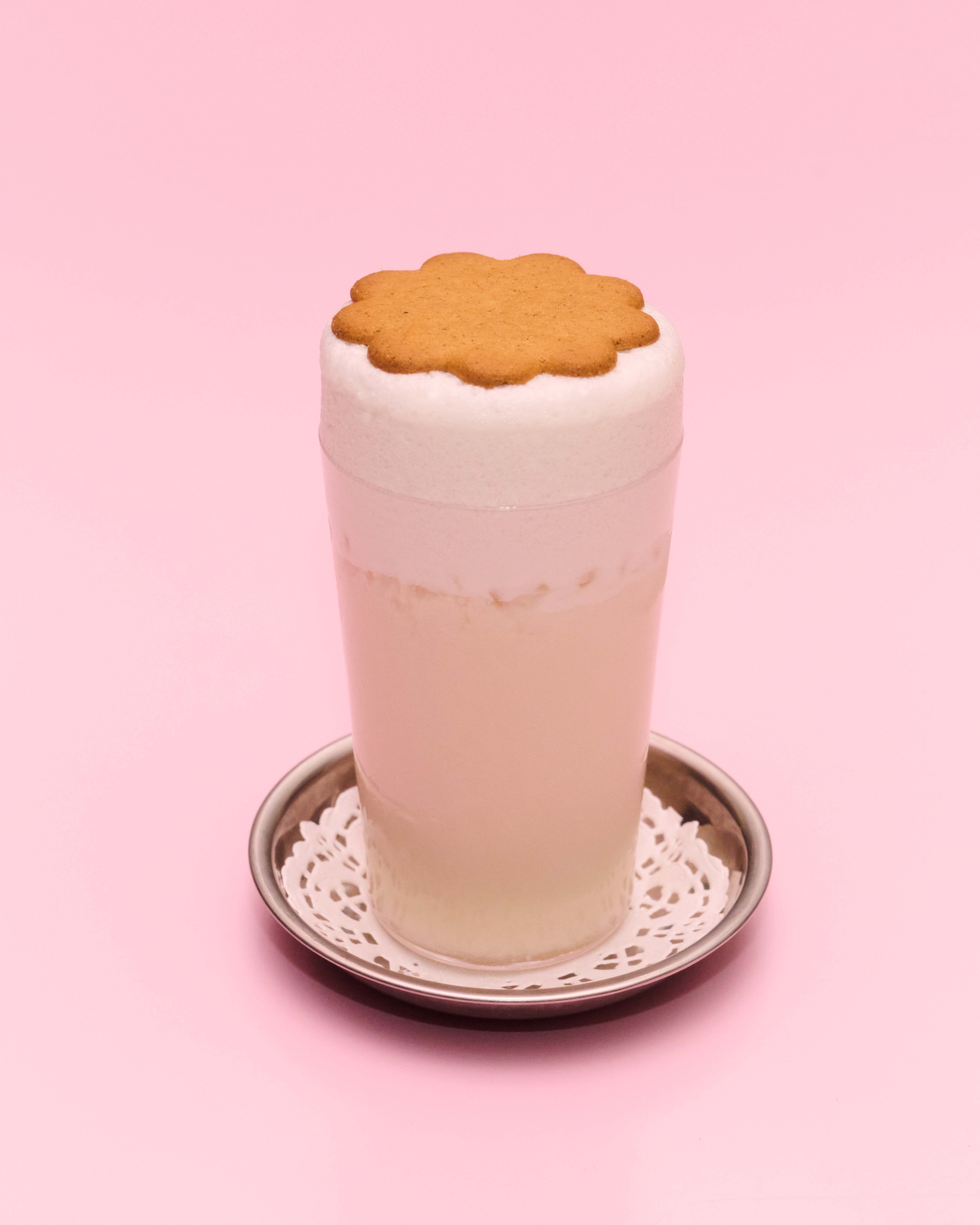 Liquid concepts come from travels, from inside jokes, from challenges waiting to be conquered. The Peaches and Cream, now a staple on the menu, references a gelato popular in Switzerland: an acidic frozen base topped with hand-whipped cream and a pinch of salt. The Larb Gai cocktail was built from the daiquiri-like components of the Thai dish that Aljaff ate daily while living there: toasted rice syrup, mint, cilantro distillation, lime, and chilli oil.