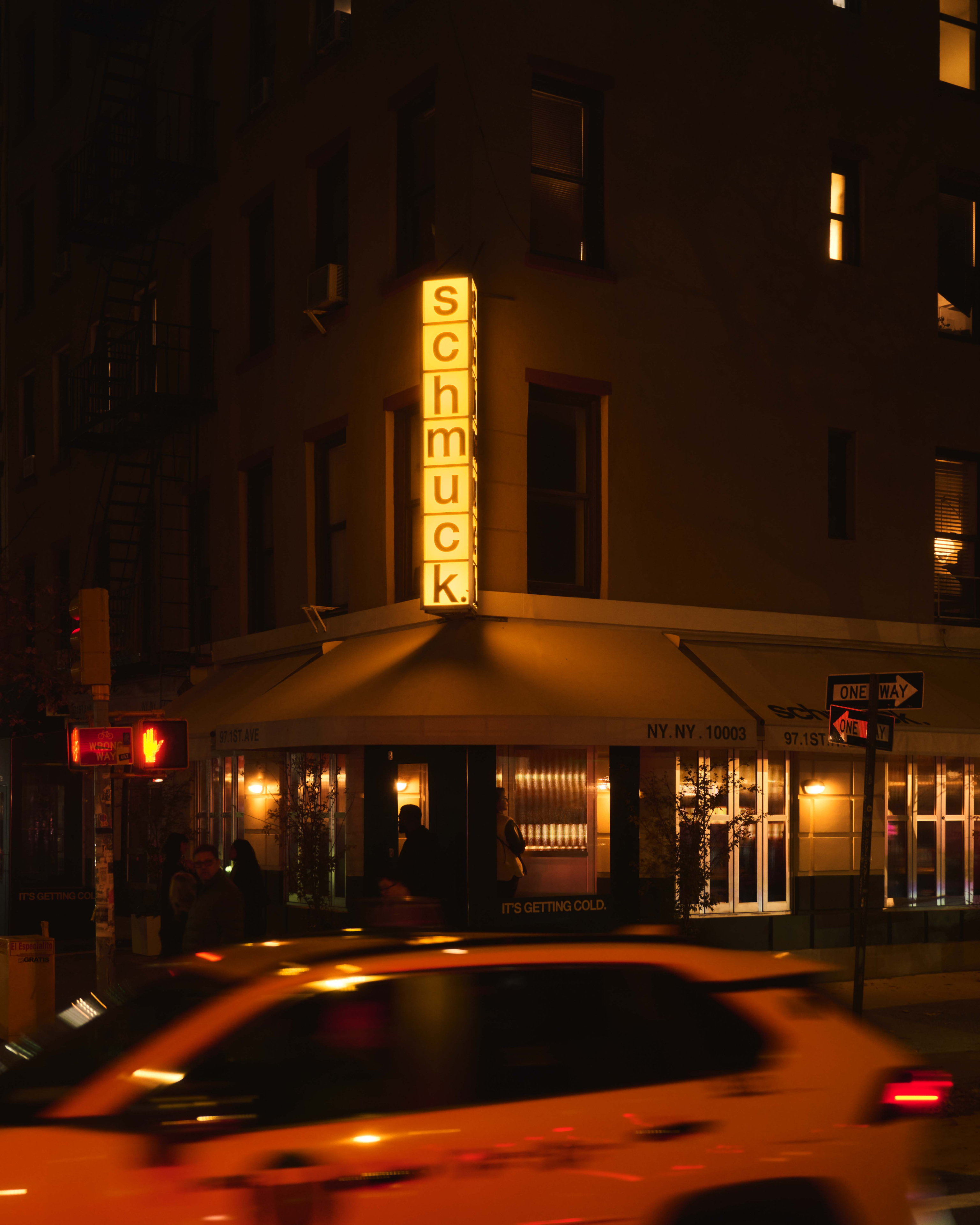Schmuck’s atmosphere changes incrementally—coasters added one week, lighting swapped the next. “We’re a brand in progress,” he says. It’s a portrait of two people who have brought the energy of a dive, the elegance of a cocktail bar, and the ethos of a showroom to First Avenue.